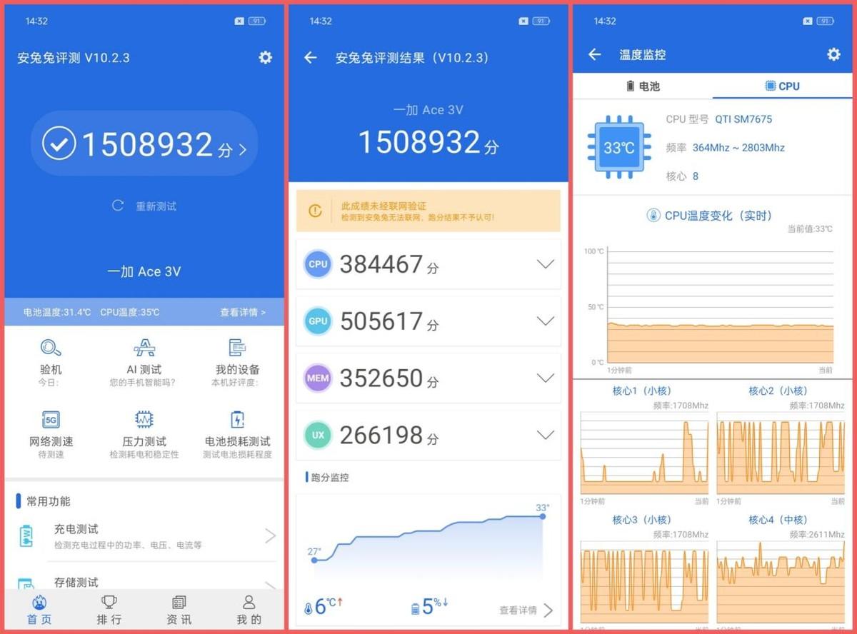 以实际游戏来说,一加 ace 3v可以在一小时《原神》“沉玉谷”地区跑图 战斗的过程中提供 59.52 的平均帧率,在半小时《崩坏:星穹铁道》“星槎海中枢”跑图时提供 54.61 的平均帧率,这已经和第三代骁龙8的游戏帧率非常接近。而且,游戏助手预置了 hyperboost 2.0 游戏稳帧引擎、超级 hdr 画质、游戏云计算专网和闪电启动等功能。