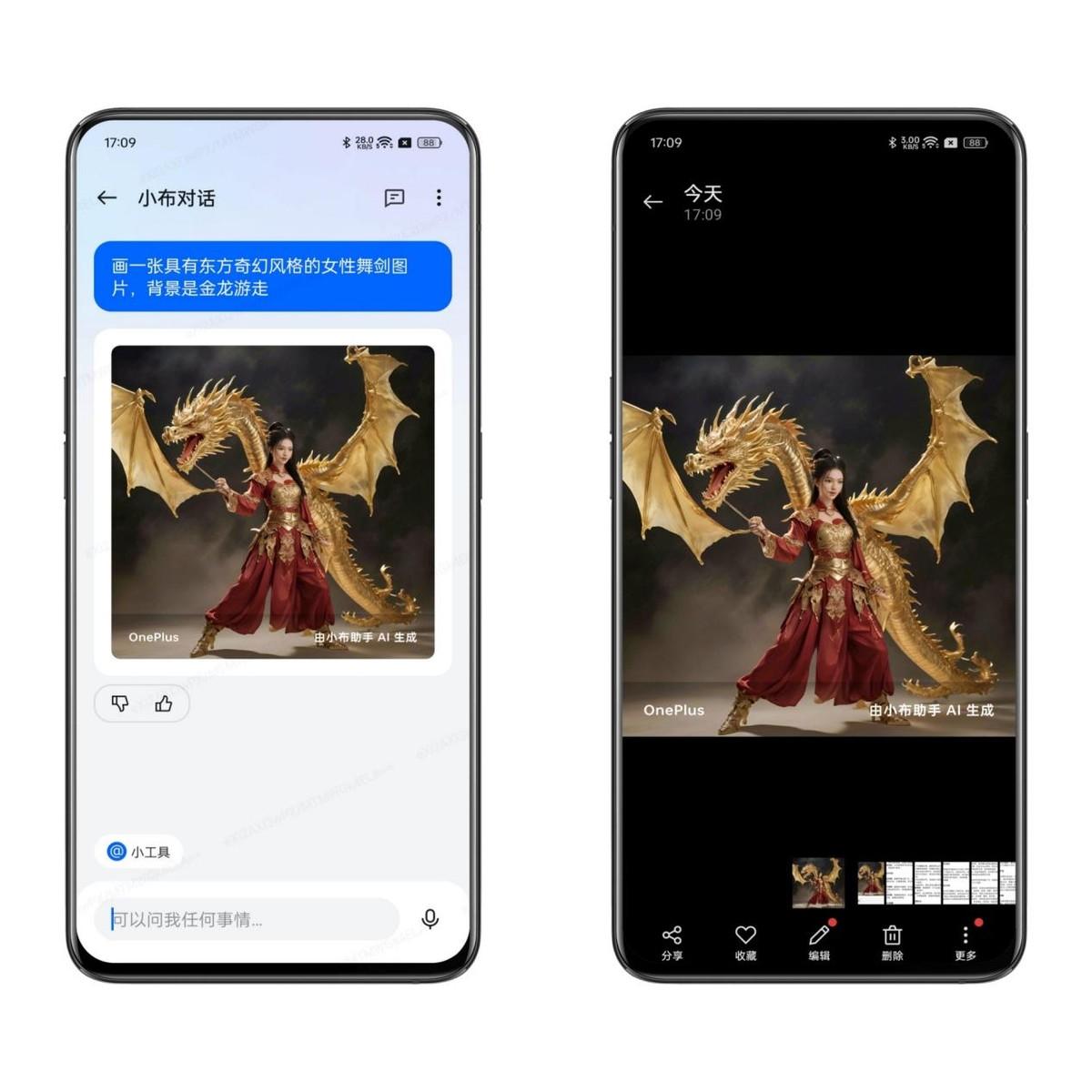 现在,只需使用一加ace 3v对小布简单描述下想要的画面,小布ai就可以快速生成一张基本符合描述的图片。就像上面这张图,我描述是:“画一张具有东方奇幻风格的女性舞剑图片,背景是金龙游走”,无论是画面细节还是图片质感都令我大为震撼。