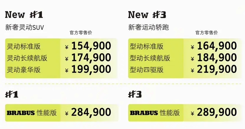 以城市代步为主,侧重品牌和豪华感的话,如果觉得18.98万起售的极氪x偏贵,smart品牌的精灵#1和#3,起步价分别降到了15.49和16.49万,把进奔驰4s店保养的门槛大大降低。