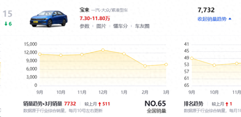 不过,近两年来,来自于一汽大众的宝来似乎有些掉队,数据不会骗人:在过去的两个月里,宝来的月销量均未能超过8000辆,近半年来,其最高月销量也“仅”有13010辆,而这款车上一次月销量超过2万辆还是在2022年的9月份。那么,曾经销量不输朗逸的宝来为何为一蹶不振呢?接下来咱们就一起来说说看。