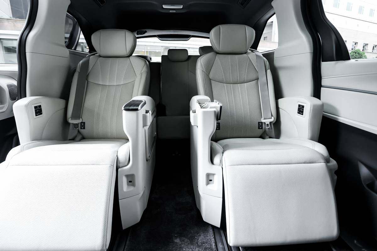 在提升二排乘客乘坐舒适度的同时,2024款赛那也并没有忽视三排乘客。车内中央过道的宽度为225mm,更宽敞的车内通道便于三排乘客进出。更长的二排座椅滑轨,也能释放出更加宽裕三排腿部空间,两全其美。